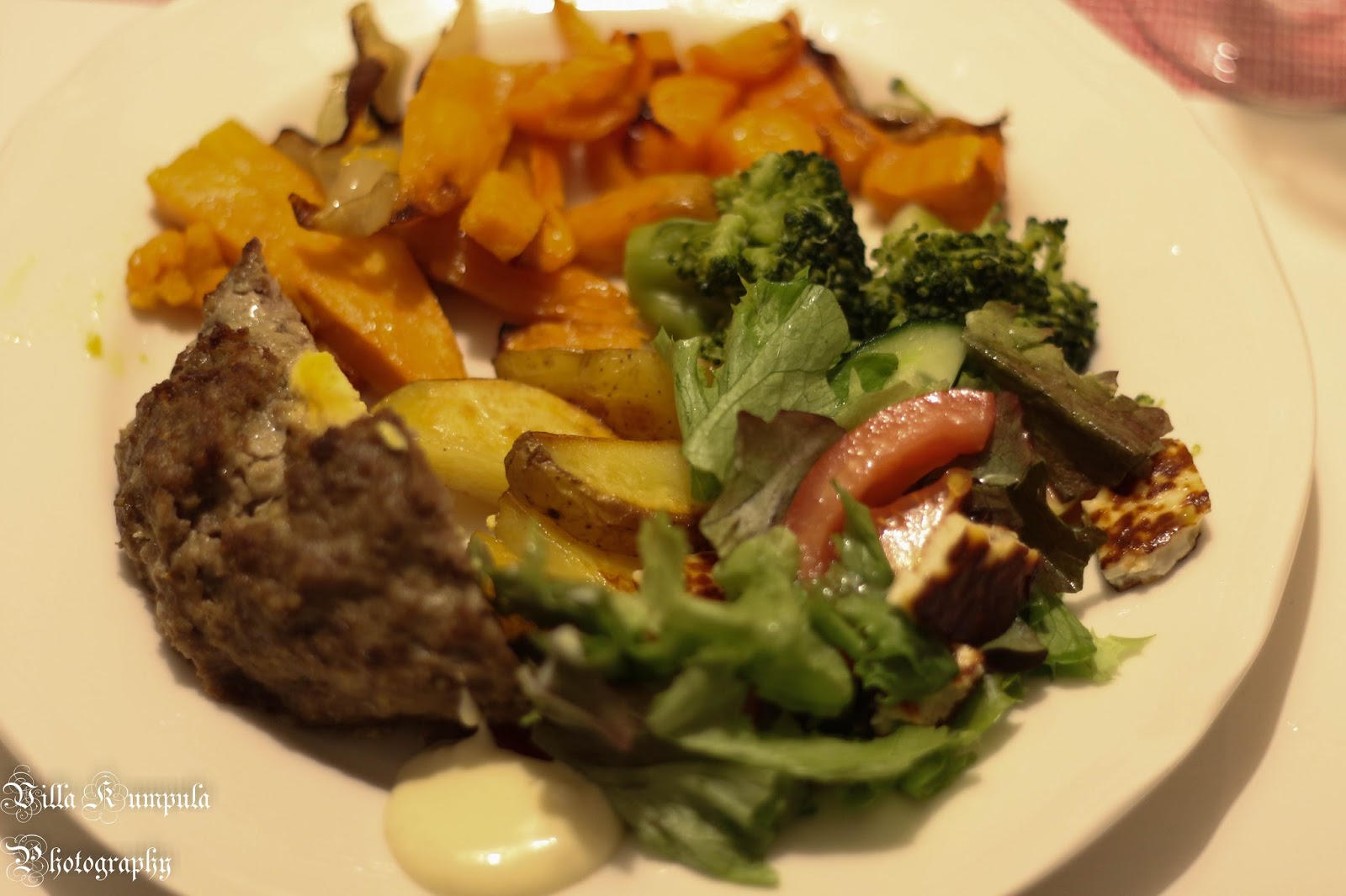Menuseen kuului mureke jossa oli keitettyä munaa täytteenä, uunikasviksia, bataattiraanuja ja lohkoperunoita.